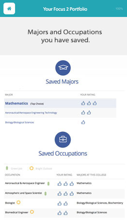 FOCUS 2 guides users through a reliable, intuitive career and education decision making model to help them choose a college, select a major, explore occupations, make informed career decisions and take action in their career development.